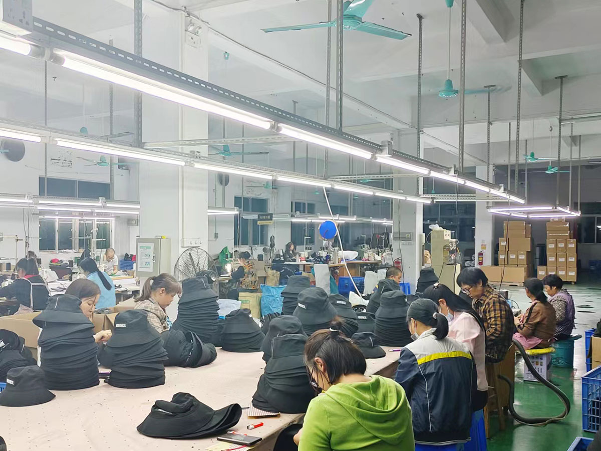 Notre facotrie est située à Dongguan City, Guangdong, Chine et la région dépasse 1000 mètres aquares,nous avons 12 lignes de couture, 300+ travailleurs et broderies&Le département imprimé peut également répondre à toutes vos exigences de différence. Notrenouvelle gamme de produits couvre toutes sortes de casquettes et de chapeaux, tels que des snapbacks, des casquettes sportives, des visières solaires, des camionneurs, des chapeaux de seau, des chapeaux d'hiver, des casquettes, des casquettes, des bonnets de journaux, des bonnets tricotés. Nous avons un ensemble complet d'installations avancées, la production annuelle de plafonds peut plus de 2 000 000 pcs.